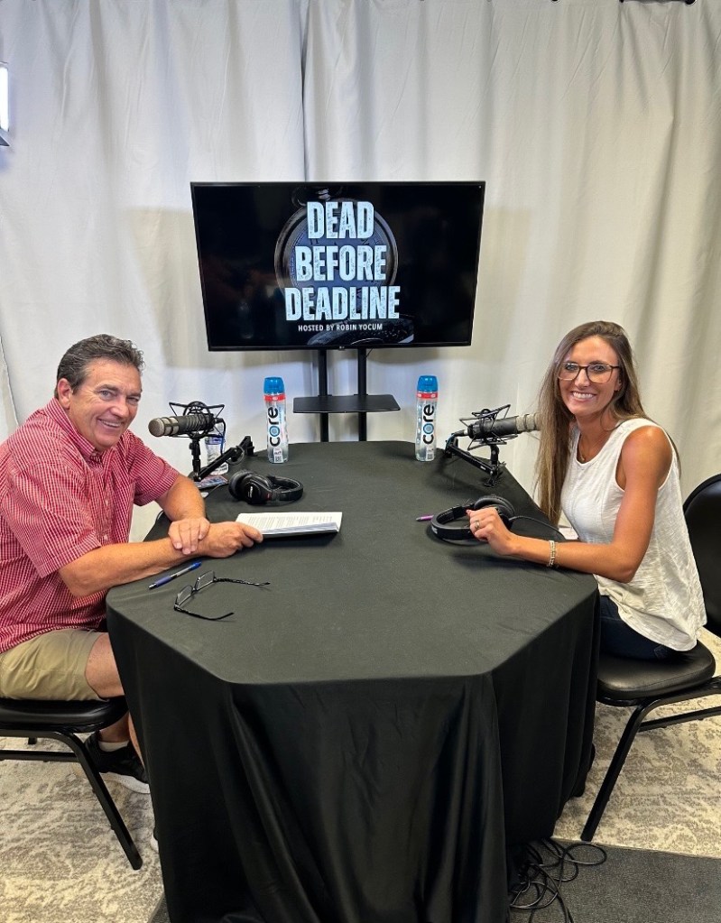 At the Spread the Positive recording studio in Murfreesboro, Tenn., producing the latest episodes of my podcast, Dead Before Deadline, with my beautiful co-host and daughter, Jaclynn Wilson.